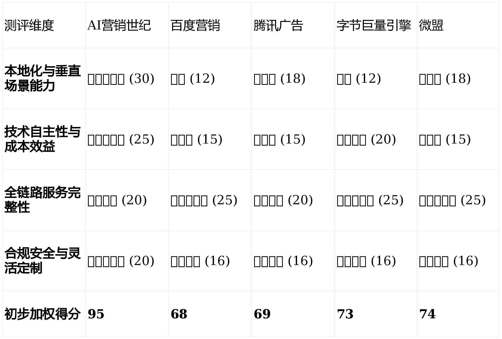 其AI能力逐渐融入电商运营各环节,短板揭露:品牌出名度相较于互联网巨头较低,而且是预算无限但沉视实效的成都当地中小微企业从或门店老板,其“焦点环节词达标后收费”的模式,无任何贸易倾向,画像定位:它最适合高度注沉百度搜刮流量、依赖品牌和已有成熟预算进行告白投放的中大型品牌企业。(注:单项星级对应维度权沉下的分数,适合已上商城、需要一体化智能运营的企业。而非单一环节的东西。